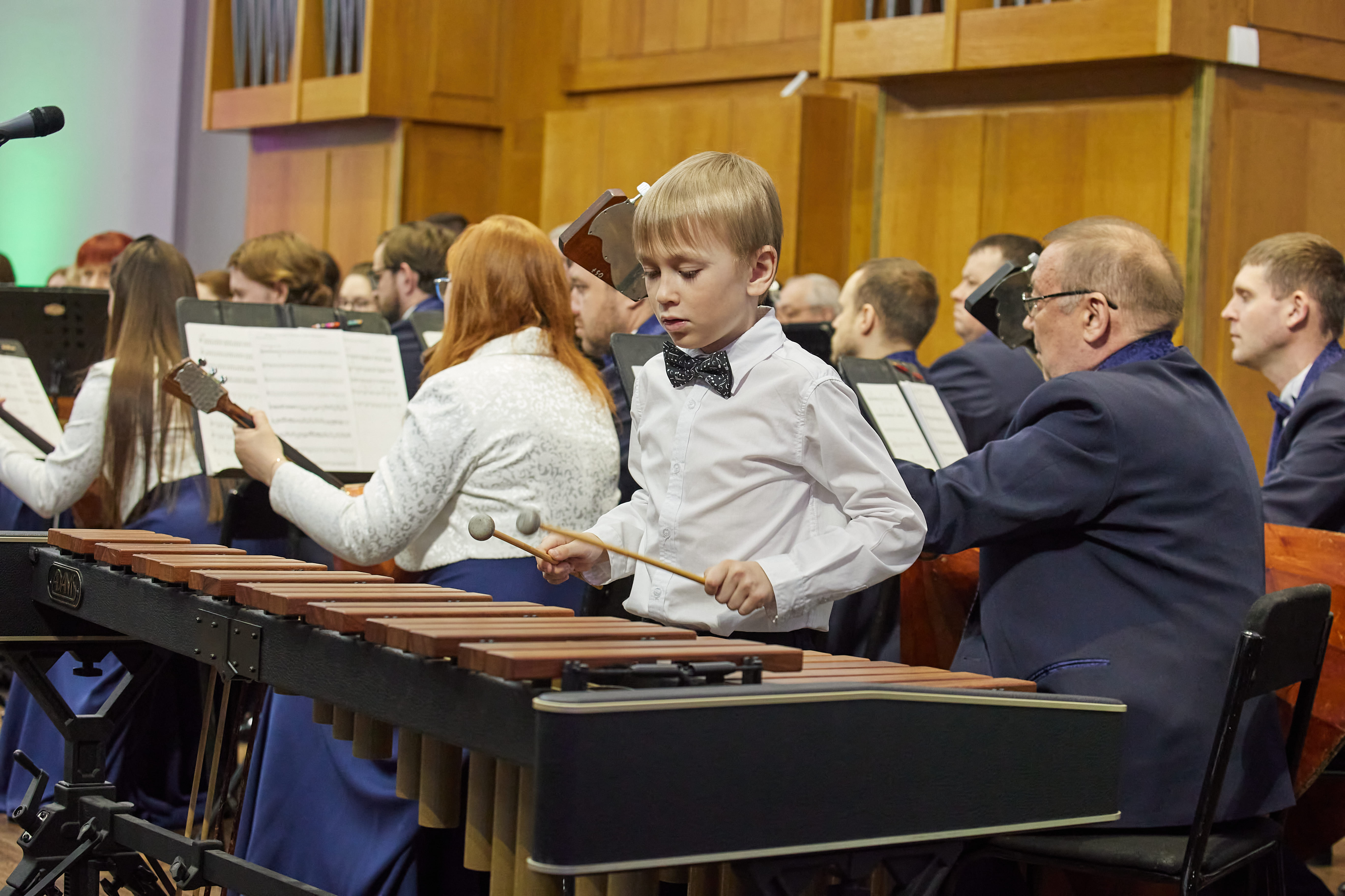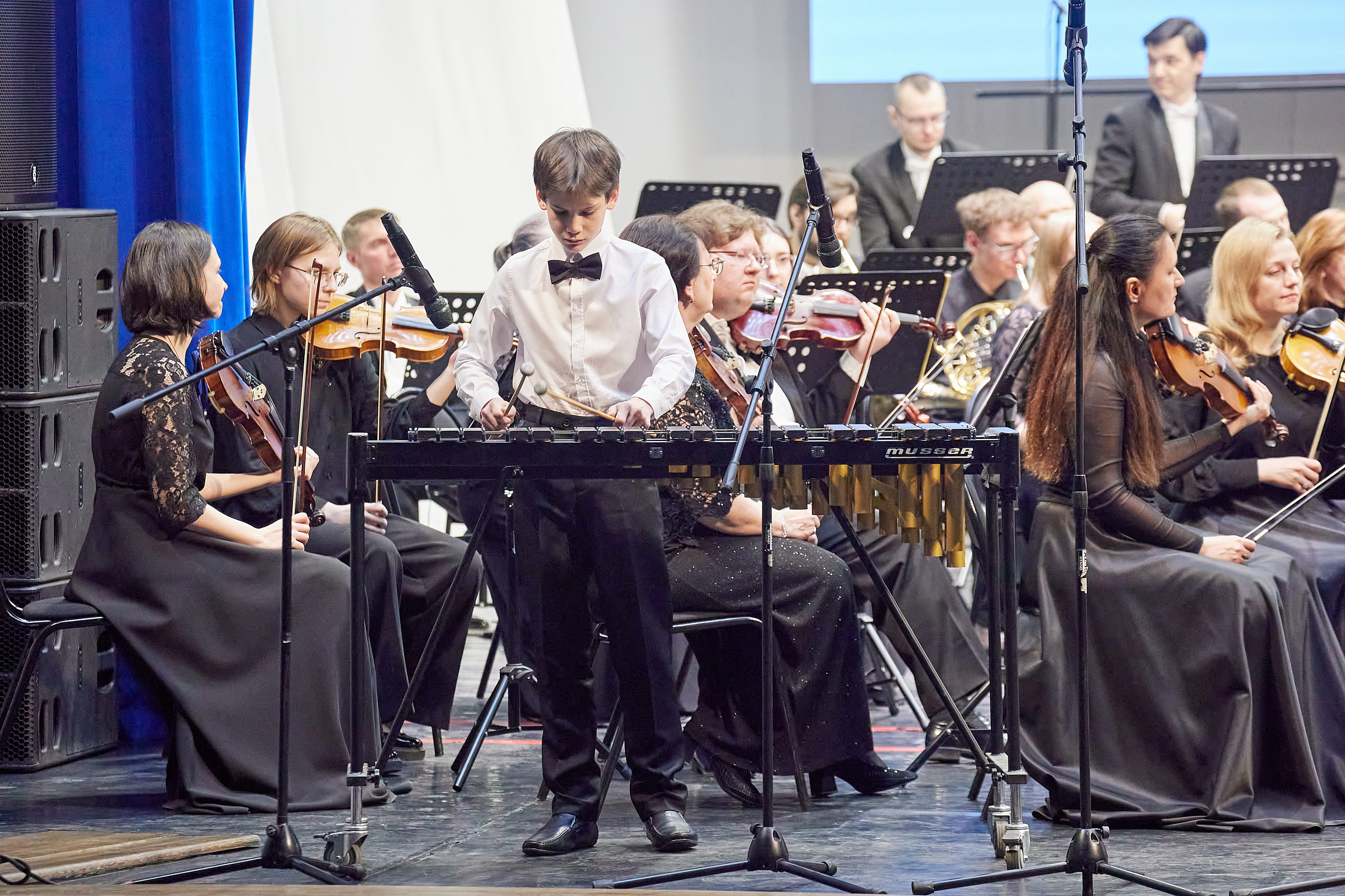 Так, 11 апреля зрители смогли насладиться выступлением народного оркестра филармонии и солистов городского проекта «Первые овации». Среди них был и Андрей Паршин, ученик детской школы искусств №50, учащийся отделения духовых и ударных инструментов. Под руководством своего преподавателя Алексея Евгеньевича Баталова, Андрей виртуозно исполнил марш из оперы Сергея Прокофьева "Любовь к трём апельсинам", продемонстрировав своё мастерство игры на ксилофоне.