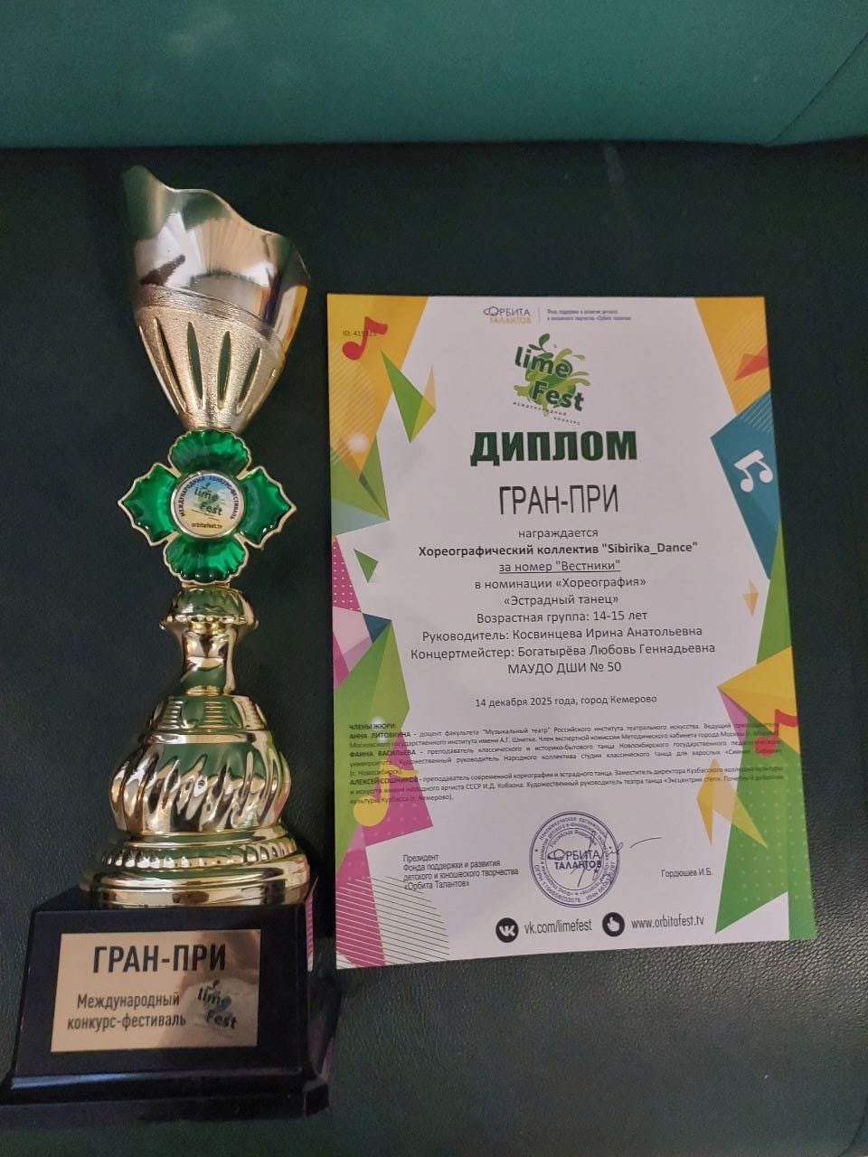 14 декабря хореографический коллектив Sibirika-Dance, стал победителем Международного конкурса-фестиваля «Lime Fest», завоевав высшую награду Гран-при! А также денежный гранд!