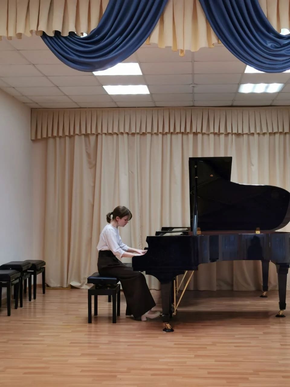 Зрителей порадовали выступления солистов и ансамблей. Выпускница фортепианного отделения, а ныне учащаяся 1 курса КОМК Алина Ранде украсила своим выступлением концертную программу.