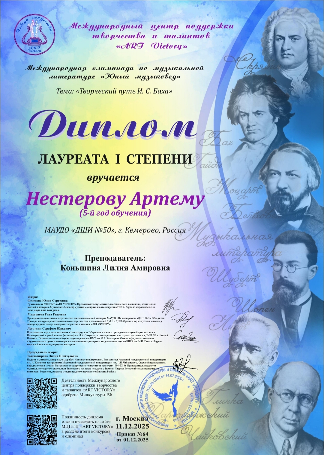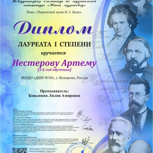 Поздравляем с победой в теоретическом конкурсе Нестерова Артема и его преподавателя Коньшину Лилию Амировну!