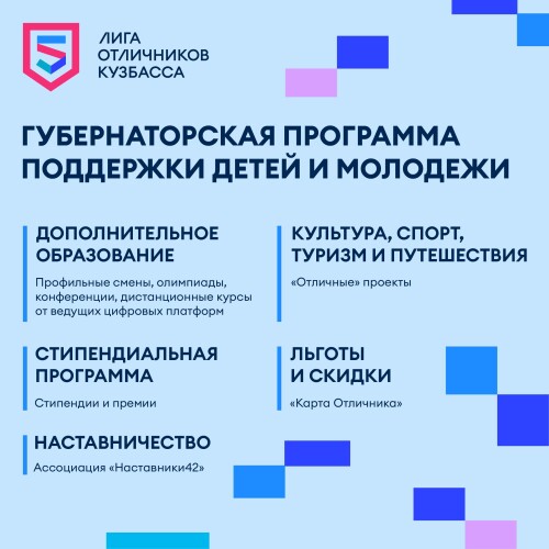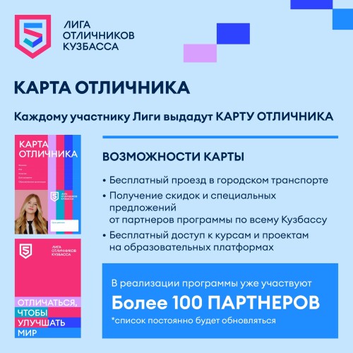 Стартовал проект «Лига отличников»!Подробнее о проекте, мерах поддержки и ключевых мероприятиях в карточках
