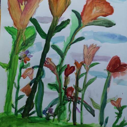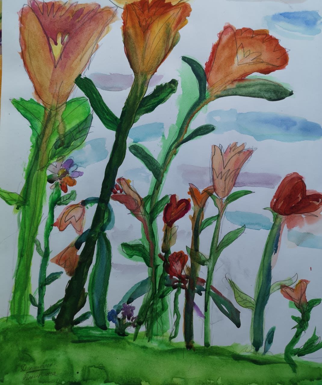 В октябре ребята подготовительного отделения (возраст 8-10 лет) выполнили работы ко Дню учителя "Цветы для учителей".