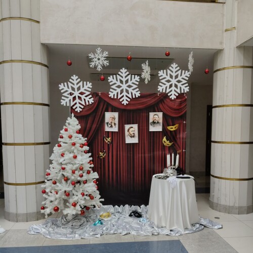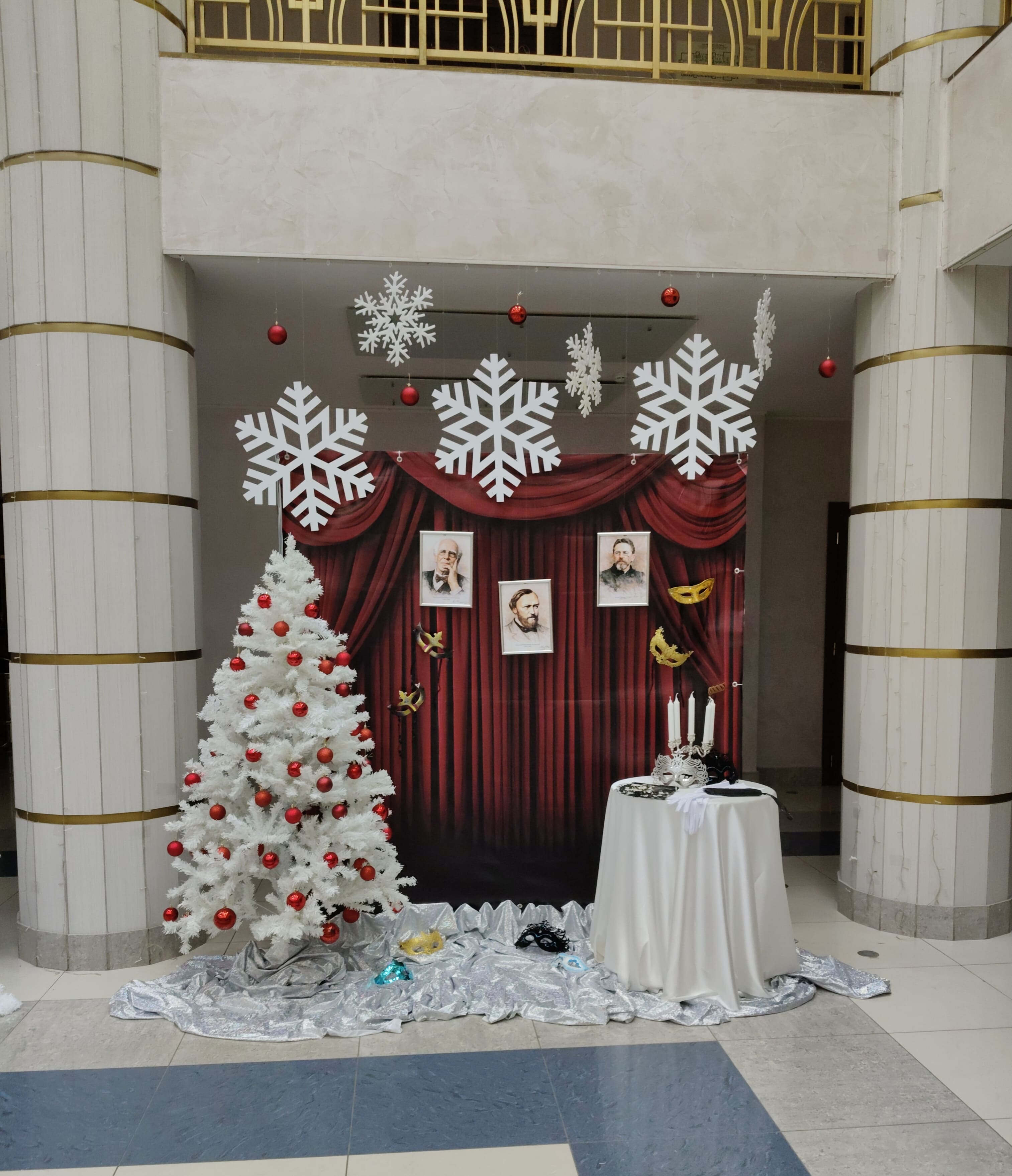 В фойе филармонии художественные отделения школ представили творческие фотозоны и инсталляции по направлениям искусства. Зрители и артисты могли сфотографироваться на память.