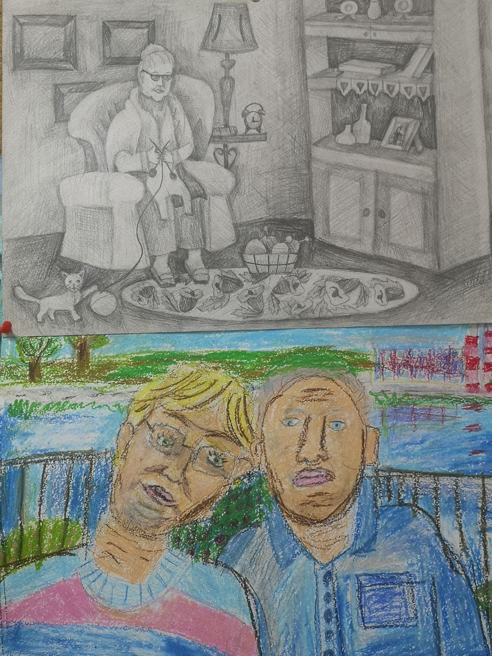 Выставка работ учащихся подготовительного художественного отделения "Бабушка и дедушка".