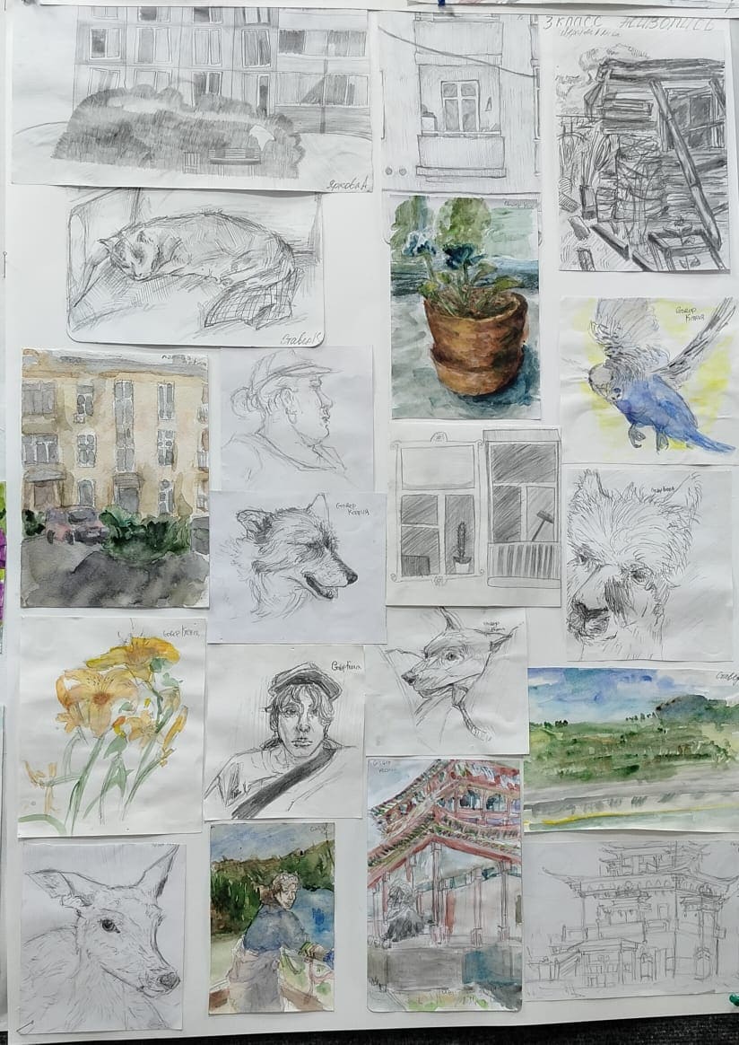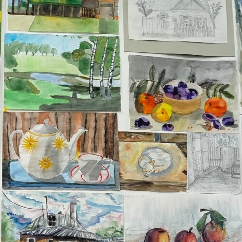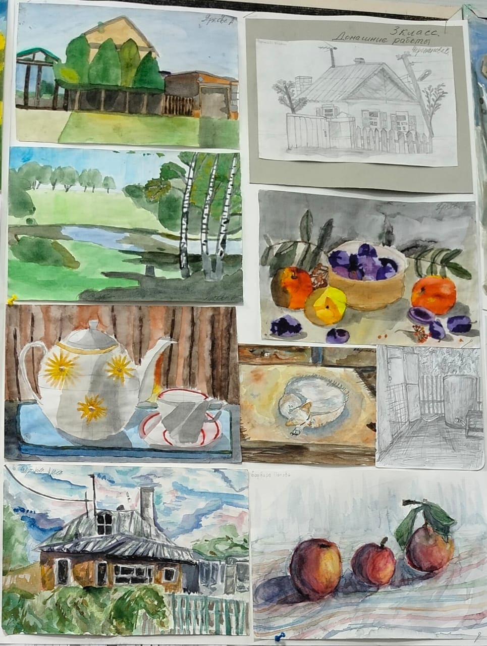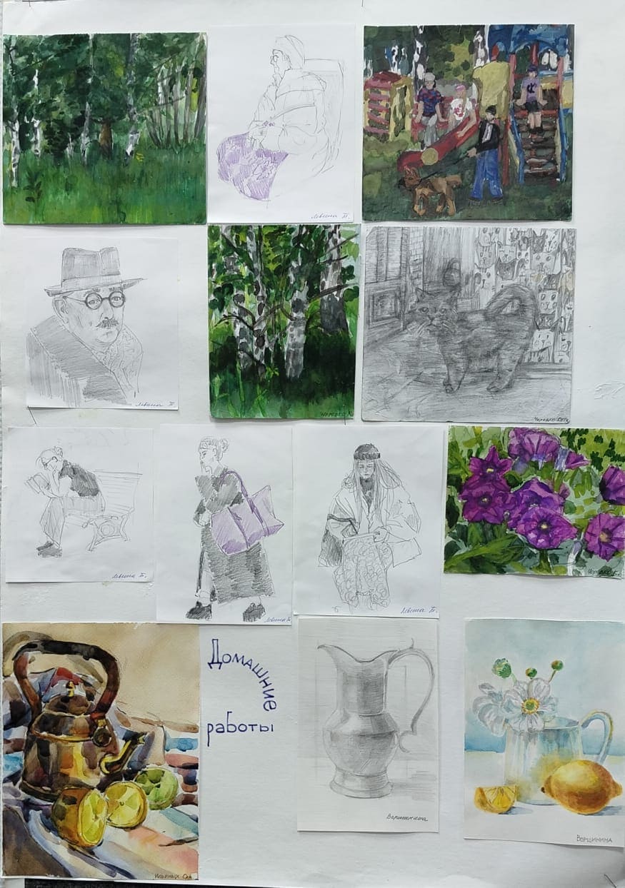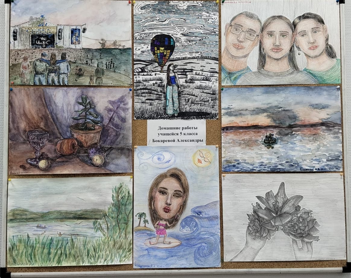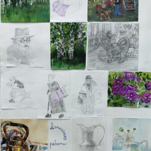 На выставке собраны лучшие домашние работы учащихся 2-6 классов. Экспозиция из разнообразных набросков, зарисовок и этюдов, выполненных юными мастерами представляет живописные пейзажи, портреты людей, передающие их индивидуальность, и выразительные натюрморты, наполненные жизнью.