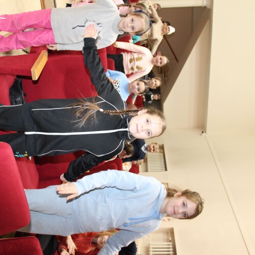 В этом году к первоклашкам пришла Фея искусств, поздравила ребят, узнала чему они научились за первые полгода учебы в школе, провела интерактивную игру, в которой участвовали и дети, и взрослые. Затем первоклассники произнесли Клятву и в подарок от Феи искусств получили спектакль «Путешествие Нильса с дикими гусями» от артистов театра для детей и молодежи.