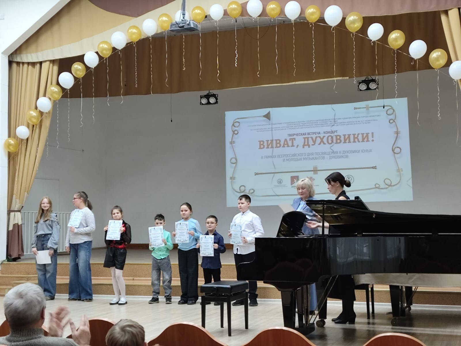 Праздник прошёл в концертном зале ДШИ №69, где для начинающих духовиков выступили учащиеся постарше и преподаватели, прозвучали произведения на флейте, трубе, саксофоне. Среди артистов, выступающих перед публикой также были ученики нашей школы: Максимов Иван (труба) и Назарова Ксения (труба), учащиеся преподавателя Юшина Николая Яковлевича, концертмейстер Астапенко Светлана Михайловна.