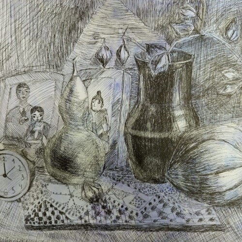 Работы выполнены на уроках тушью пером или гелевой ручкой по предварительной акварельной подсветке.