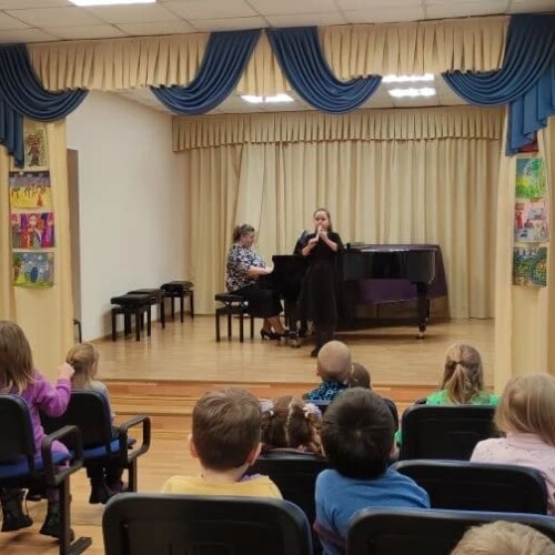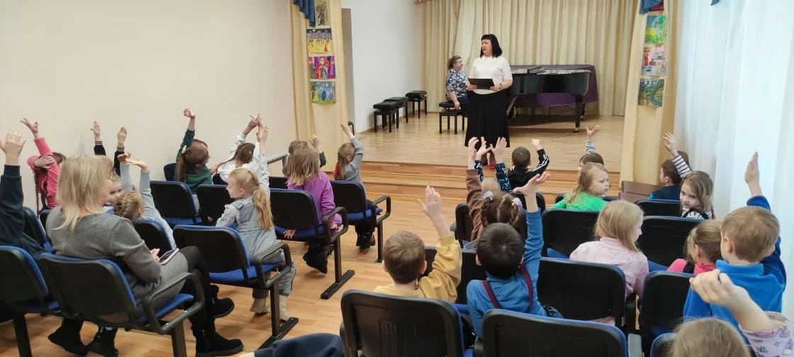 Дети прослушали музыкальные произведения в исполнении учащихся и преподавателей школы искусств, играл в игры и отвечали на вопросы ведущей о зиме и Масленице.